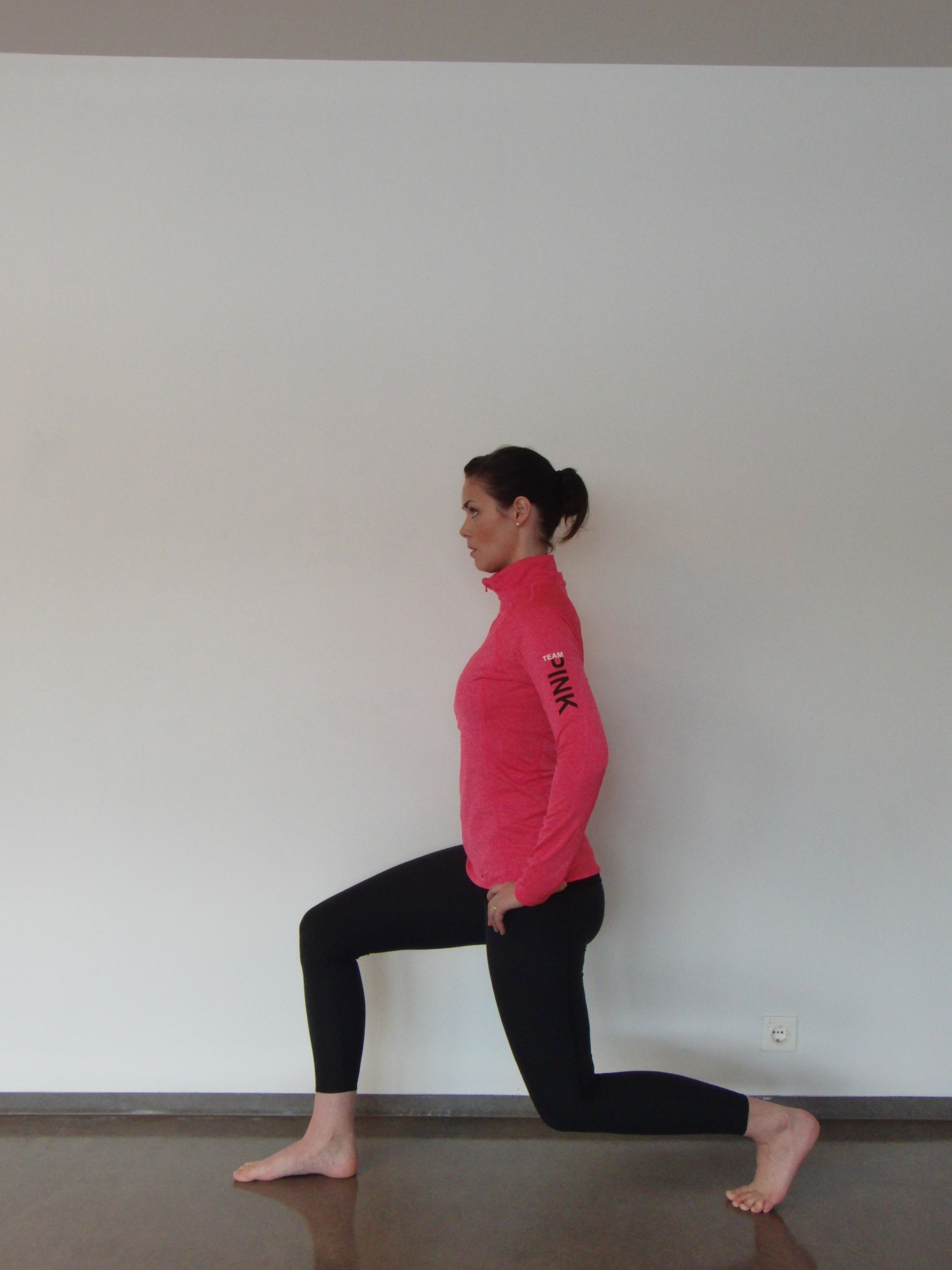 - Beygja hné á fremri fótlegg smávegis og leitast við að bæði mjaðmabein snúi beint fram.